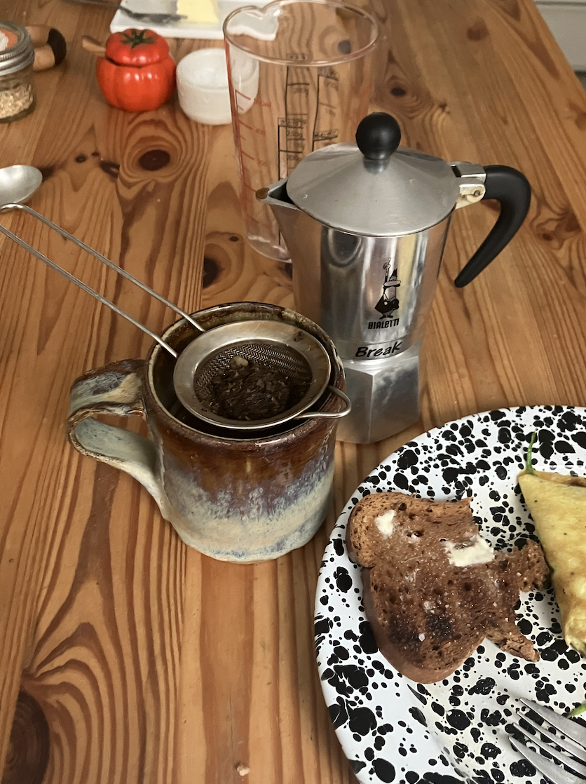 you need a hot tea if you’re thinking about the cold. i only make my favorite concoction on the weekends because it’s too involved to make everyday. i like to boil masala chai (from rishi) in a pot on my stove. once it’s simmered for a few minutes i’ll add a little pour of non dairy milk. step two is making decaf espresso in my moka pot. i’ll pour a just a bit of the espresso in the bottom of my mug and then pour the chai mixture over the top. sometimes i’ll add honey but recently i’ve been drinking it without. the flavors of the ginger, cardamom, pepper and clove mixed with the earthy acidity of the coffee is so delicious and warming. it feels like a luxury and is one of my favorite ways to embrace winter.