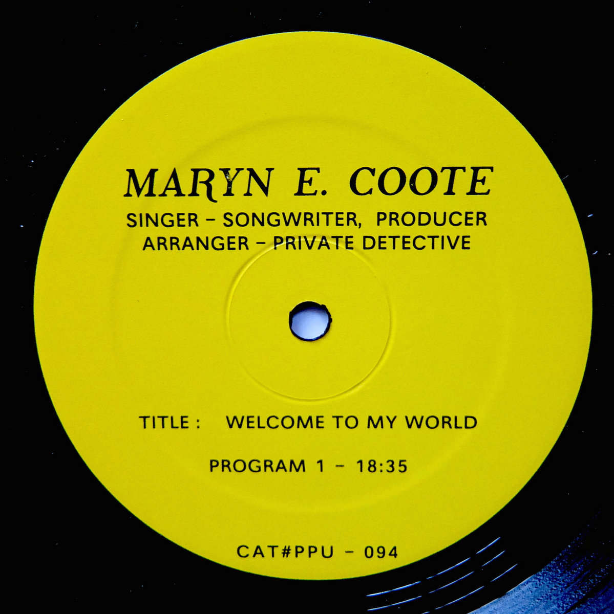 left: welcome to my world another compilation released in 2018. “singer-songwriter, producer, arranger, private detective” this woman could not have been any cooler. right: maryn e coote - maskeraad, a compilation of tracks from the 70s released on peoples potential unlimited in 2017.